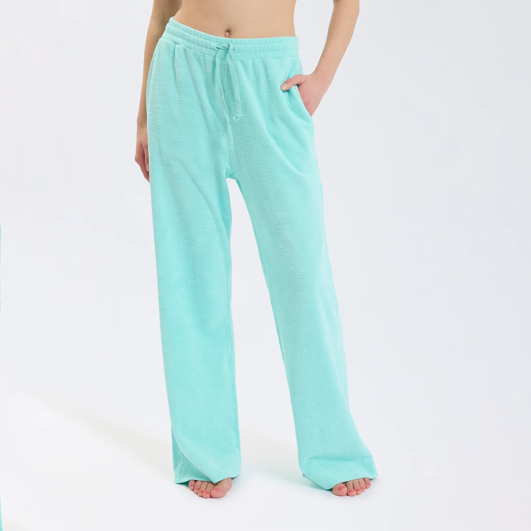 Speezys Long Pants are comfortable to wear while lounging and look good outside the house. Wear yours with our Boxy Kaftan Top or with our matching Kimono Jacket for a more sophisticated look. The Long Pants is available in multiple colors. They're made from 100% cotton terry for a wide-leg fit and have a mid-rise waistband with an adjustable drawstring.